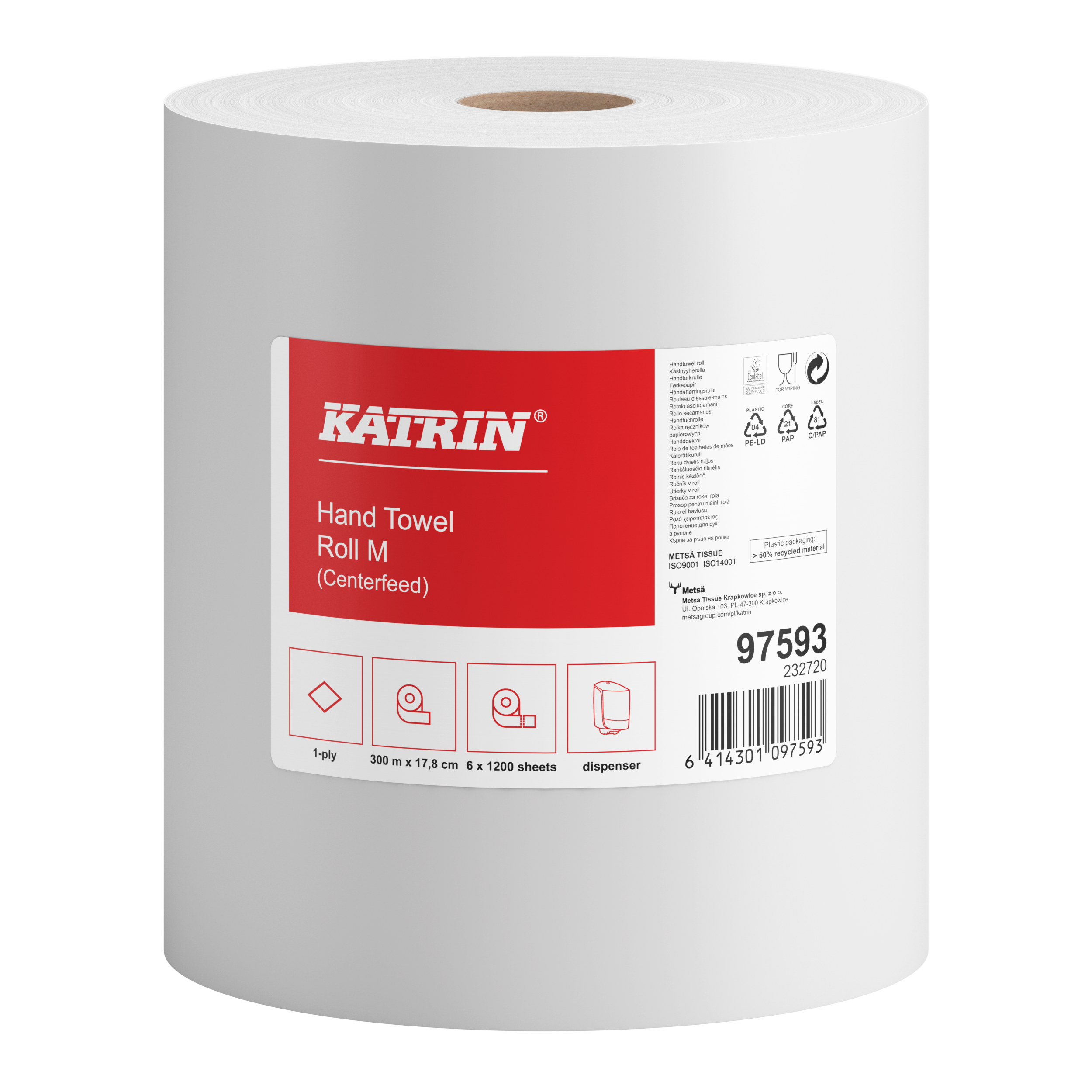 Ręcznik w roli Katrin 97593, 1w super biały, opakowanie 6 rolek
